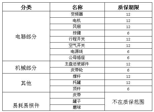 保為修期一年(附件及易耗品磨罐、磨介除外),保修期結(jié)束后,我們將以最為優(yōu)惠的政策繼續(xù)提供服務(wù)。