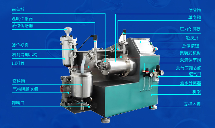 納米砂磨機(jī)采用獨(dú)特的研磨原理,通過(guò)高能研磨介質(zhì)對(duì)物料進(jìn)行沖擊、剪切和摩擦,實(shí)現(xiàn)物料粒徑的納米級(jí)細(xì)化。設(shè)備采用智能化控制系統(tǒng),可精確調(diào)節(jié)研磨參數(shù),確保產(chǎn)品粒徑分布均勻,D50粒徑最小可達(dá)20納米以下。