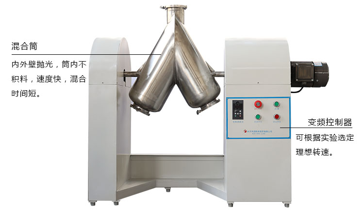 V型混合機用于對粉體均勻混合。適用于制藥、食品、化工、冶金、電子等行業對兩種以上的干粉狀、顆粒狀物料的混合。V型混合機混合筒結構獨特,通過機械傳動使V型圓柱體內的物料做往復翻動,達到均勻混合目的。V型混合機混料筒一般用不銹鋼制作,內外壁拋光,結構設計上不易積料,速度快,混合時間短的特點,清洗方便。