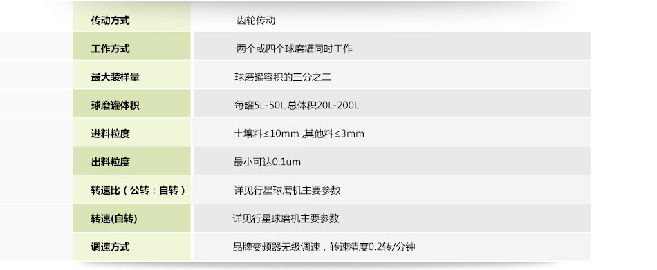 六、行星球磨機參數